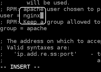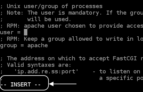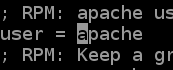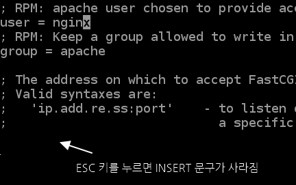 1. 커서를 group = apache 의 a 글자에 위치하고