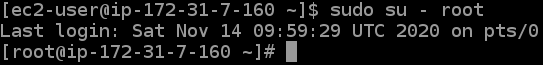 이제 sudo su - root 명령으로 root 계정으로 변경하시고요