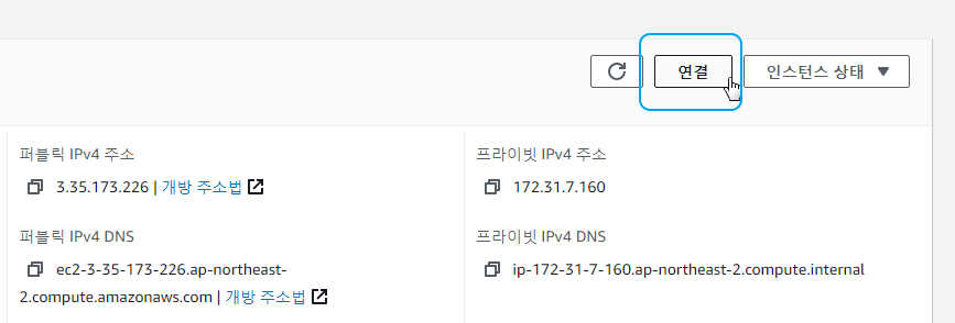 이제 터미널 창을 닫고, 인스턴스 연결 창에서 2번 뒤로 돌아가면 다시 인스턴스 연결 창이 나옵니다.