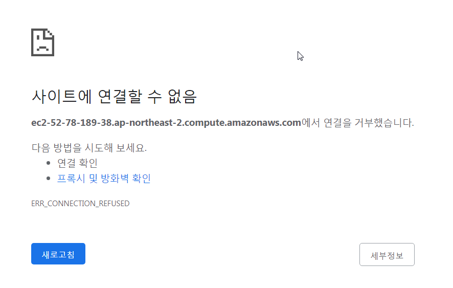 아까와 상이하게 퍼블릭 IP주소, URL이 변경된 것을 확인할 수 있습니다.