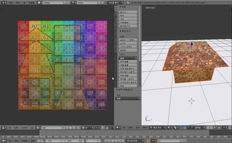 UV맵과 마크씨임이란 걸 익히면서 연습으로 만들어본 초메가톤급 단순한 도형 집입니다 :)