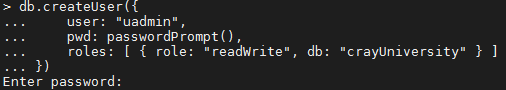 roles: [ { role: "readWrite", db: "crayUniversity" } ]