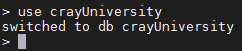 show dbs 명령을 내리면 crayUniversity DB가 조회가 됩니다.