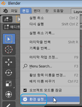 편집 - 환경 설정 메뉴에 진입하신 다음에,