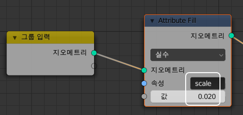 Shift + A 키를 눌러 속성(Attribute) - Attribute Fill 을 선택하여 노드를 배치한 후,