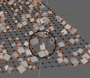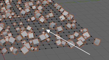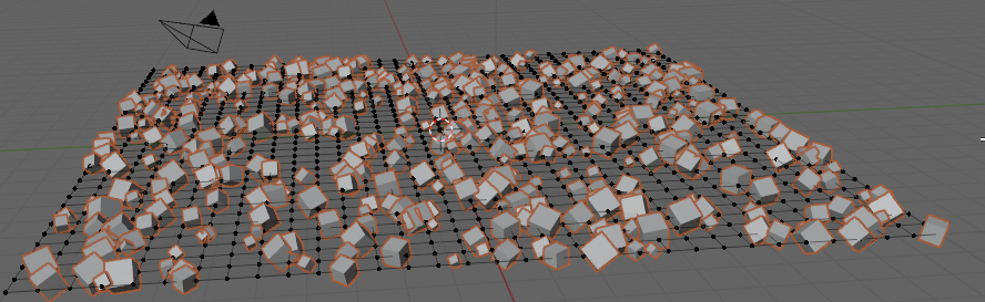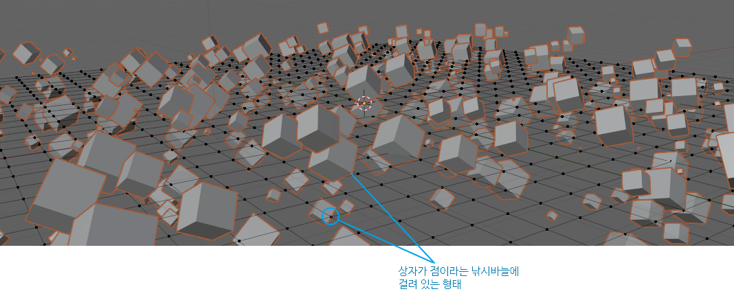그러면 뷰포트에는 각기 다른 크기의 큐브가 각 점에 매달리게 됩니다.