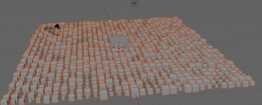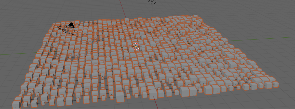 그러면 상단 뷰포트에 아래와 같이 모든 버텍스에 상자가 배치된 것을 보실 수 있습니다.
