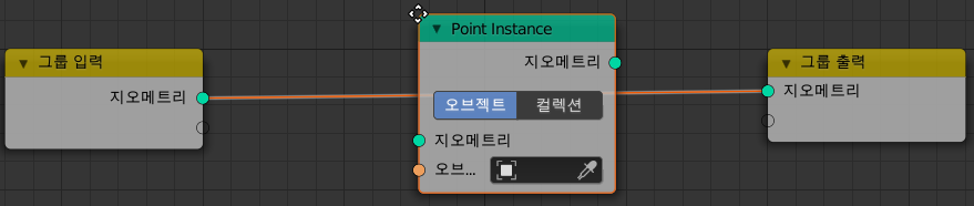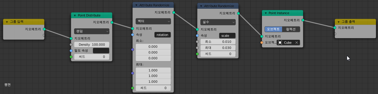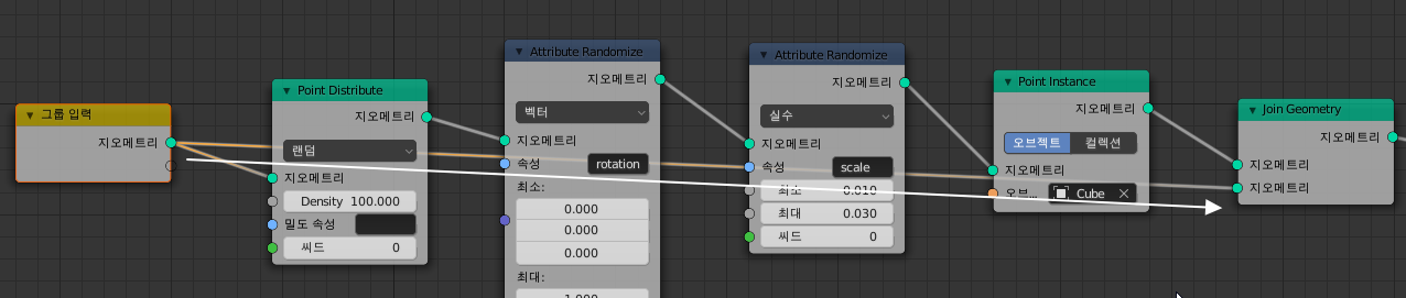 지금까지 추가된 지오메트리 노드의 모습입니다.