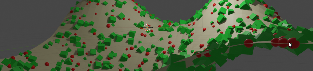 지오메트리 노드는 이렇게 그물망에 각 버텍스마다 오브젝트를 엮을 수 있고