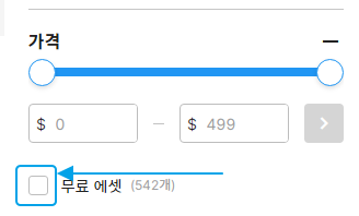 웹페이지 우측에 구매할 가격대 범위를 선택하는 부분이 있는데 여기서 '무료 에셋' 체크 상자를 선택해 주세요.