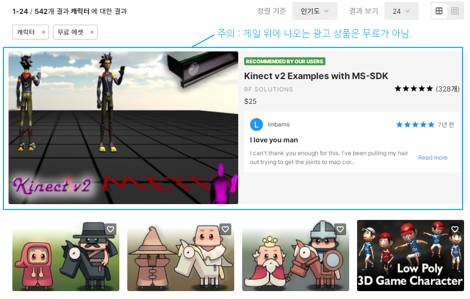 하지만 제일 위에 뜨는 광고 상품은 무료가 아닌 점, 참조해 주세요.