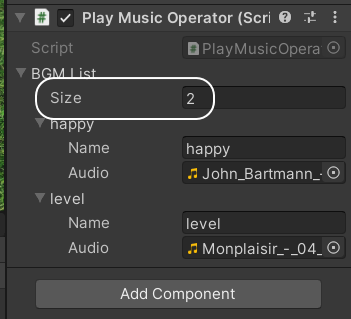 배경음악이 3개 필요하면 Size 에 3을 입력하고,