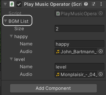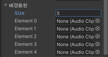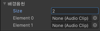 배경음원이라는 배열은 인스펙터 창에 아래와 같이 보여질 겁니다.