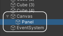 그래서 Panel만 생성하면 이렇게 Canvas가 자동으로 생겨나고 덤으로 EventSystem 이라는 것도 함께 생성되지요.