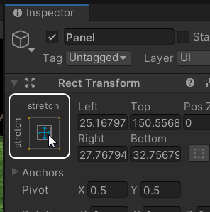 Panel(패널)이 선택된 상태에서, Inspector 창에서 아래 그림으로 된 부분을 클릭합니다.