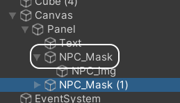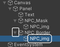 그리고 NPC_Mask 하단에 NPC_img 가 오도록 드래그해 아래와 같이 배치합니다.