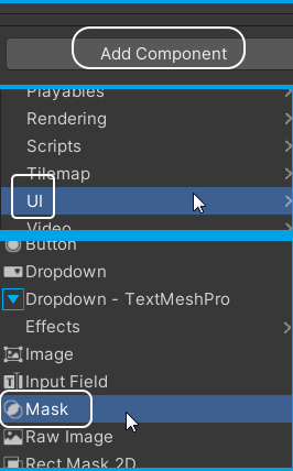 Add Component ( 컴포넌트 추가 ) - UI - Mask 항목을 차례대로 선택합니다.