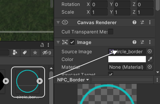 NPC_border 가 선택된 상태에서 금방 업로드한 이미지를 Source Image 에 드래그해 적용합니다.