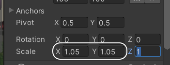 Inspector 창에서 Scale X, Scale Y를 각각 1.05 또는 적당한 수치로 조정하시면,