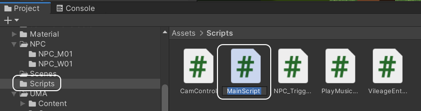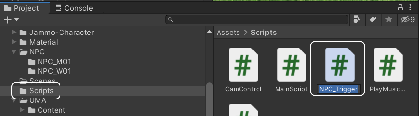Assets - Scripts 폴더에 NPC_Trigger 라는 스크립트를 생성한 다음에,