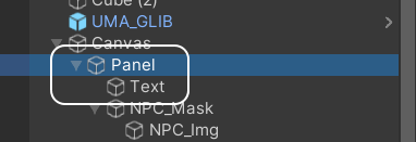 Project 창의 Canvas 폴더 아래에 있는 Panel 과 Text 를