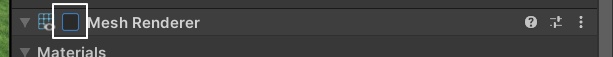 Mesh Renderer (메시 렌더러) 컴포넌트 체크 상자 해제. - 큐브의 모양을 보이지 않게 합니다.