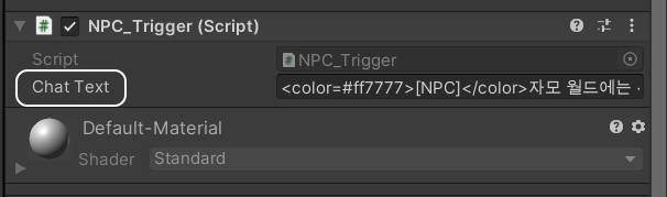 2) NPC_Trigger 스크립트를 클릭, 마우스 버튼을 놓지 말고