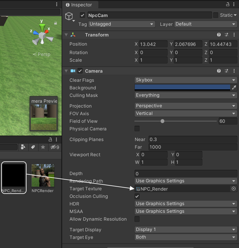 그러면 Target Texture 속성이 NPC_Render 로 변경됩니다.