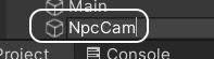 그리고 이름을 NpcCam 으로 지어줍니다. 스크립트에서 이 이름을 활용할 것입니다.