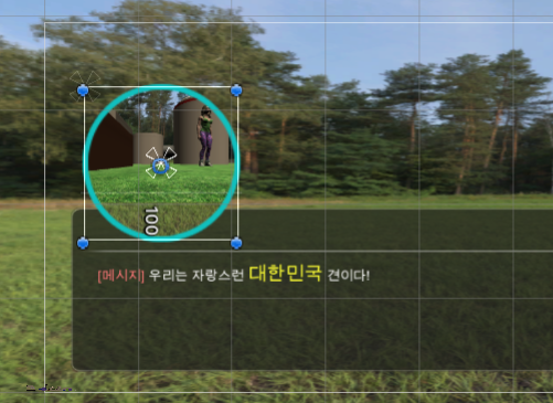 그리고 다시 2D ui 편집모드로 와보면 아래와 같이 카메라가 비추는 부분이 변경된 것을 알 수 있습니다.