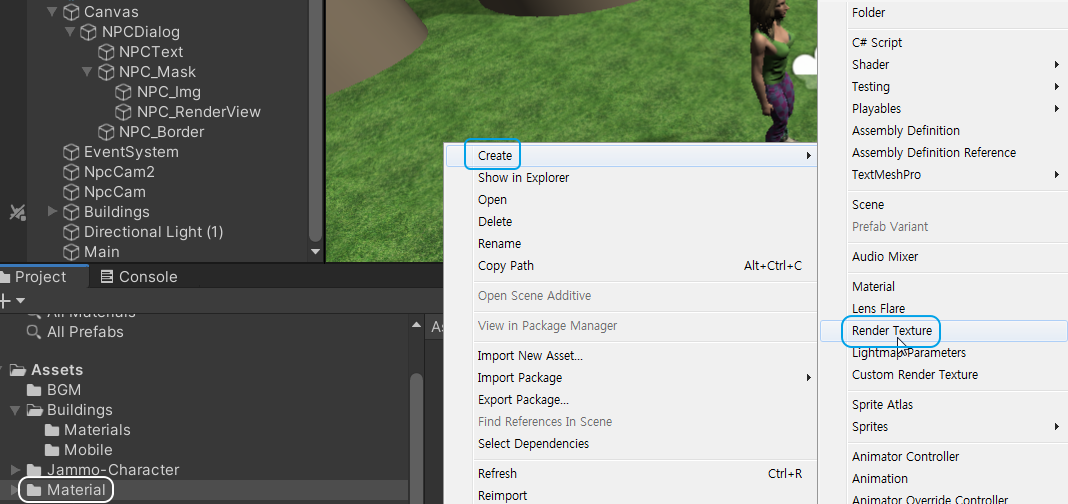 2. NPC_Render 렌더텍스쳐를 클릭, 마우스를 놓지 않은 상태에서