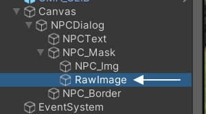 Hierarchy 창에서 RawImage 를 드래그해 아래와 같이 NPC_Mask 하위에 배치해주세요.