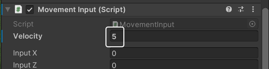 Inspector 창에서 Movement Input 스크립트 컴포넌트의 Velocity 속성을 5~10정도로 변경해 주세요.