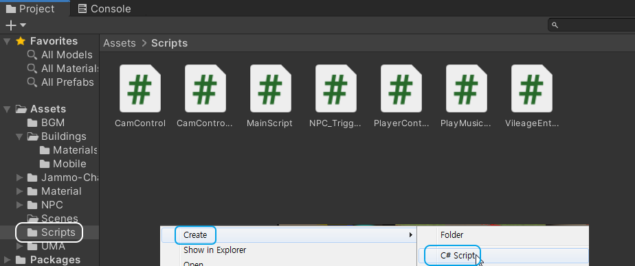 Assets - Scripts 폴더를 선택하신 다음.