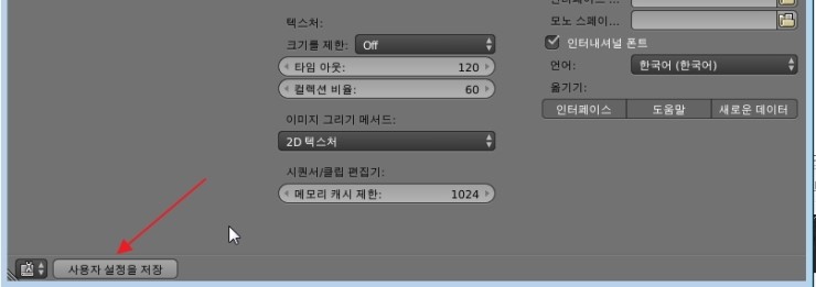 왼쪽 아래 보이는 "사용자 설정을 저장" 버튼을 한번만 눌러주면