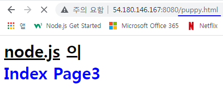 퍼블릭IP주소 + /puppy.html 이라고 주소를 입력하면 아래와 같이 노출되는 것을 확인할 수 있습니다.