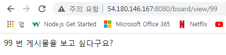 비슷한 주소인 퍼블릭IP:8080/board/view/99 URL을 호출하면
