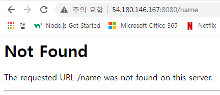 ( 웹브라우저에서 퍼블릭IP:8080/name 을 입력한 예 )