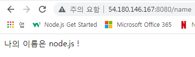 node.js 서버를 재시작한 다음에 퍼블릭IP:8080/name URL을 살펴봅시다.