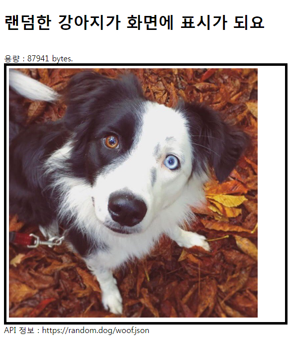 <h1>랜덤한 강아지가 화면에 표시가 되요</h1><br/>