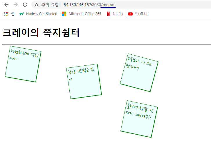 웹브라우저에서 퍼블릭IP:8080/memo 웹페이에 접속해 보세요.