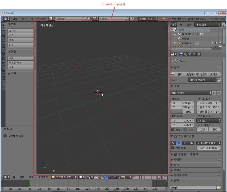 주의하실 점은 블렌더에서는 마우스를 꼭 뷰포트 위에 올리고 각종 단축키를 눌러주어야 합니다.
