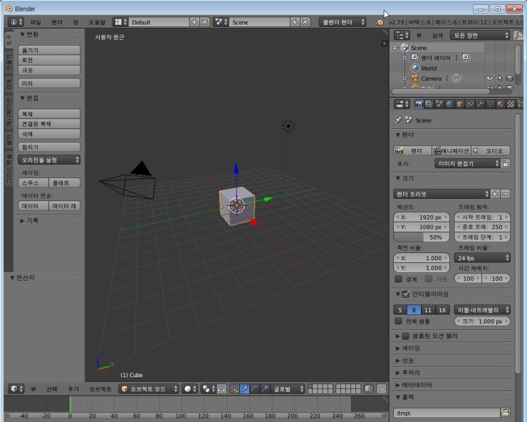 우선 지난 1강에서 한글 설정을 마치신 분은 블렌더를 처음 시작하면