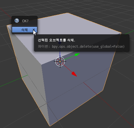 '삭제' 선택이 한번 나옵니다. 혹시라도 실수를 방지하기 위한 블렌더 회사의 방침인듯 하군요 :)