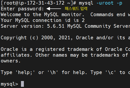 설치된 MYSQL 은 패스워드가 아직 지정되지 않았는데요.