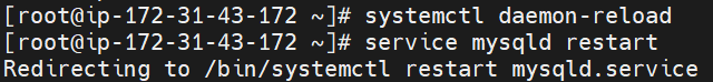 변경사항을 적용하고 MYSQL 서비스를 재시작합니다.