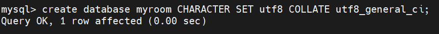create database myroom CHARACTER SET utf8 COLLATE utf8_general_ci;