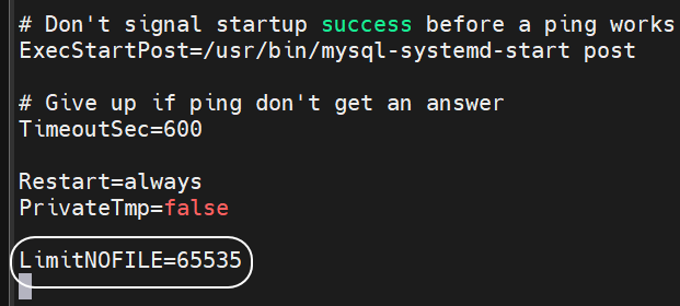 이는 MYSQL 서버가 서버에서 동시에 열수 있는 파일의 갯수를 65,535 개로 재조정합니다.