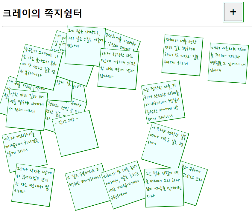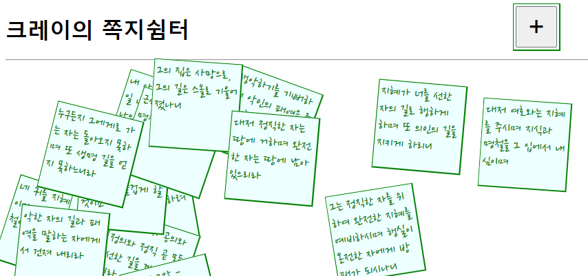 지난번과는 다르게 쪽지가 모두 살아 있는 것을 보실 수 있습니다.