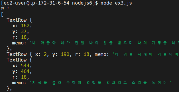 이렇게 SELECT 한 결과를 node.js 에서 사용할 수가 있습니다.